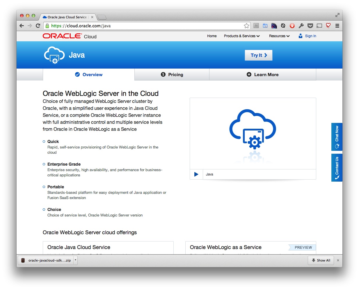 There are some good videos buried under the Resources menu at cloud.oracle.com, along with a few other good resources in there. I’m kicking myself, because I didn’t stumble onto these resources until I saw them on the demo app that gets deployed by default when your Java Cloud gets provisioned. This despite the well-labeled Resources menu at the top of the Cloud home page that literally pointed at these resources.